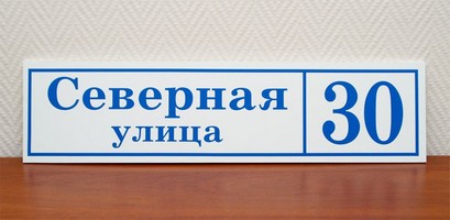 табличек на дом, адресных табличек, табличек с номерами домов на коттеджи, дачи, адресные указатели. Предлагаем Вам пластиковые адресные таблички, отличающиеся демократичной ценой. Также Вы сможете заказать адресные таблички из других материалов и даже с внутренней подсветкой.