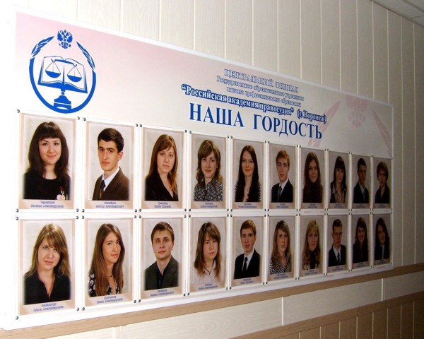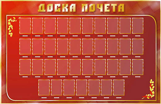 Доска почетаДоска почета представляет собой стенд с именами и фотографиями передовиков производства. Чаще всего доски почета имеют вид широкого щита открытого или застеленного вида. Могут располагаться как в интерьере зданий заводов и предприятий, так и на улице перед ними. А также могут иметь место на улицах города. История досок почёта насчитывает почти семьсот лет. Впервые они появились в XIV веке в китае, где, после освобождения от монгольского ига, основатель новой династии Мин велел построить в каждом деревне империи два павильона. Один из них должен был повествовать о хороших делах жителей, а второй - о не очень. В советское время, стоит заметить, наряду с досками почета также имели место и доски позора, но в наше время эта традиция, к счастью, сошла на нет. В наше время доски почета чаще всего являют собой мини-альбом с фото лучших представителей завода, предпричтия или просто города текущего времени, а также наиболее известных людей в истории этого завода или города. С моральной точки зрения доски почета являются средством поощрения более успешных работников предприятия и стимулом для менее удачливых. В их классическом варианте доски почета более характерны для госпредприятий в регионах, но могут быть использованы и на любой частной фирме как открытка из совка с марками из фото сотрудников. Доски почета могут использоваться постоянно, а могут быть предназначены для корпоративов и ситуативного поощрения лучших сотрудников. А также - как средство креативной самопрезентации сотрудников фирмы. При заказе доски почета стоит учитывать размер, материалы, дизайн, количество рамок и необходимость подсветки. А также наличие в ней кармашков для фото или панели из стекла