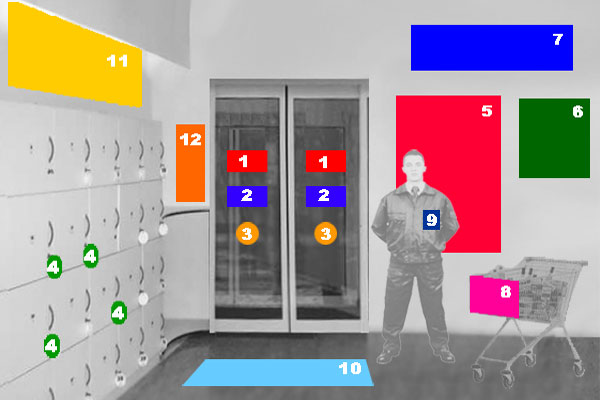 1 - ценникодержатель2 - постер информационный3 - разделитель размерный на трубу4 - размерная наклейка5 - постер (плакат)6 - наклейка7 -лифлетхолдер А4 А5 А3 (на ноге)8 - шелфтокер "лучшая цена"1 - наклейка напольная
