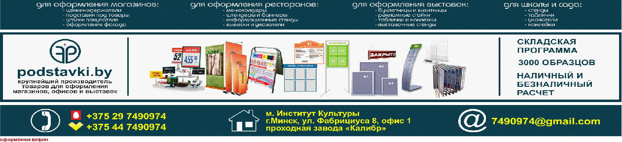 БУКЛЕТНИЦЫ и ВИЗИТНИЦЫ КАРМАНЫ НАСТЕННЫЕ МЕНЮХОЛДЕРЫ ПОДСТАВКИ ДЛЯ ЛИСТОВОК "Антивирусный" экран ПОДСТАВКИ ПОД ТОВАРЫ ИЗДЕЛИЯ ИЗ ОРГСТЕКЛА ТОРГОВОЕ ОБОРУДОВАНИЕ ЦЕННИКОДЕРЖАТЕЛИ ЦЕННИКИ РАМОЧНАЯ СИСТЕМА НАБОРНЫЕ ЦЕННИКИ ДЕЛИТЕЛИ ПОЛОЧНЫЕ МОНЕТНИЦЫ РАЗМЕРНИКИ ИНФОРМАЦИОННЫЕ СТЕНДЫ МОБИЛЬНЫЕ СТЕНДЫ РЕКЛАМНЫЙ СТЕНД РЕКЛАМНЫЕ СТОЙКИ ШТЕНДЕР ПЕРЕКИДНАЯ СИСТЕМА ТАБЛИЧКИ POS МАТЕРИАЛЫ КРЕПЛЕНИЯ И ПОДВЕСЫ НОМЕРКИ ГАРДЕРОБНЫЕ БЕЙДЖ УРНЫ ДЛЯ ПОЖЕРТВОВАНИЙ ЛОТОТРОНЫ НАРУЖНАЯ РЕКЛАМА ВЫВЕСКИ БЕГУЩАЯ СТРОКА НАКЛЕЙКИ НА ВИТРИНЫ ОФОРМЛЕНИЕ РАСПРОДАЖ УСЛУГИ ПО ОФОРМЛЕНИЮ ПРАЗДНИЧНОЕ ОФОРМЛЕНИЕ ОФОРМЛЕНИЕ МАГАЗИНА ОФОРМЛЕНИЕ КАФЕ ОФОРМЛЕНИЕ ОФИСА ВЫСТАВОЧНЫЕ СТЕНДЫ ЛАЗЕРНАЯ РЕЗКА ШЕЛКОГРАФИЯ ТАМПОПЕЧАТЬ ШИРОКОФОРМАТНАЯ ПЕЧАТЬ ОПЕРАТИВНАЯ ПЕЧАТЬ ВЫБОРЫ 2020 ПОЖАРНАЯ БЕЗОПАСНОСТЬ |