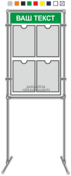 напольный информационный стенд на 4 кармана А4. Каркас стенда изготавливается из хромированных труб диеметром 25
