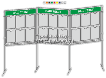 напольный информационный стенд на 8 кармана А4 и 2-А3 перекидную систему на 6 карманов и 1 объемный