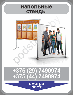 системы), для расположения на стену или в качестве напольной конструкции. Вы можете купить в Минске подходящий для вас готовый стенд ознакомившись с нашим каталогом по ценам 2021 года. Помимо стандартных решений представленных здесь, мы готовы выполнить ваш заказ по изготовлению индивидуального дизайна информационного стенда(щита или доски). Ждем ваших звонков и заказов по тел в вайбер +375(44) 74-909-74 и на электронную почту 7490974@gmail.com. Актуальная цена 2021 года. Ждем вас в нашем магазине по адресу